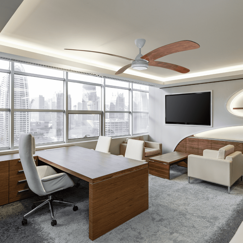 High Breeze 100 White Blades Wood Bent 4 Dark Teak in 1500mm or 2000mm Sweep