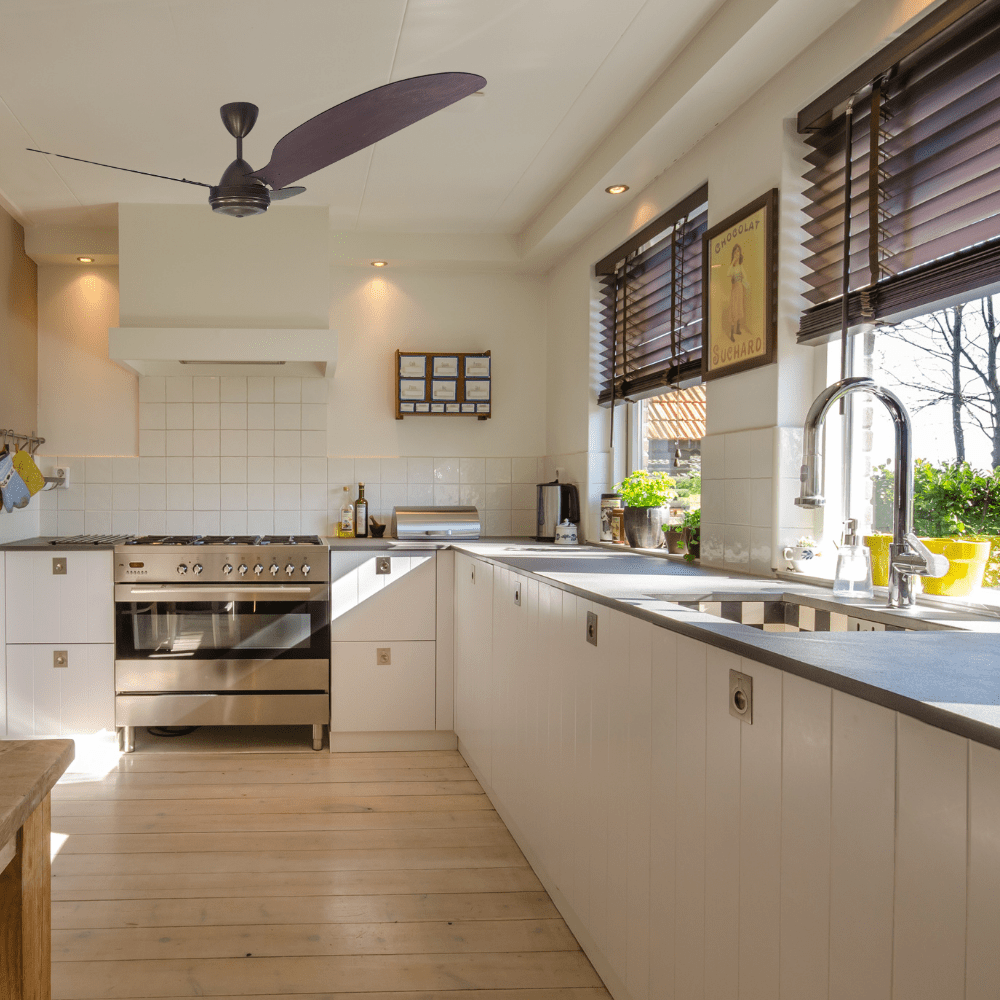 Fan supplied with 230mm downrod. Select longer or shorter down rods for higher or lower ceilings