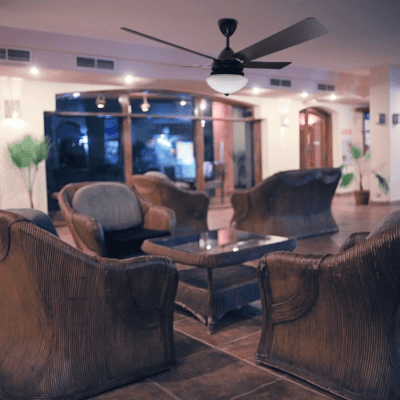 Fan supplied with 230mm downrod. Select longer or shorter down rods for higher or lower ceilings