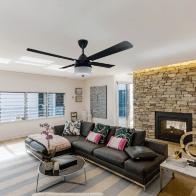 High Breeze Motor Black Blades Wood 4 Black with LED Light Kit in 1200mm or 1400mm Sweep