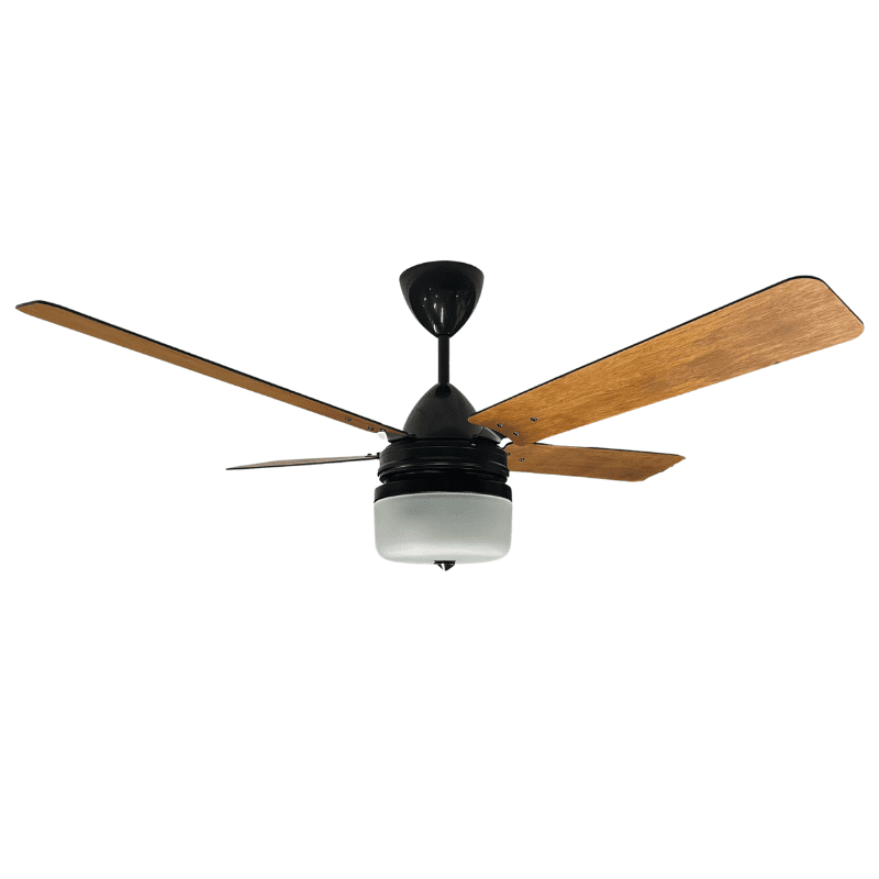 High Breeze Motor Black Blades Wood 4 Light Teak with Cleo Light Kit in 1200mm or 1400mm Sweep
