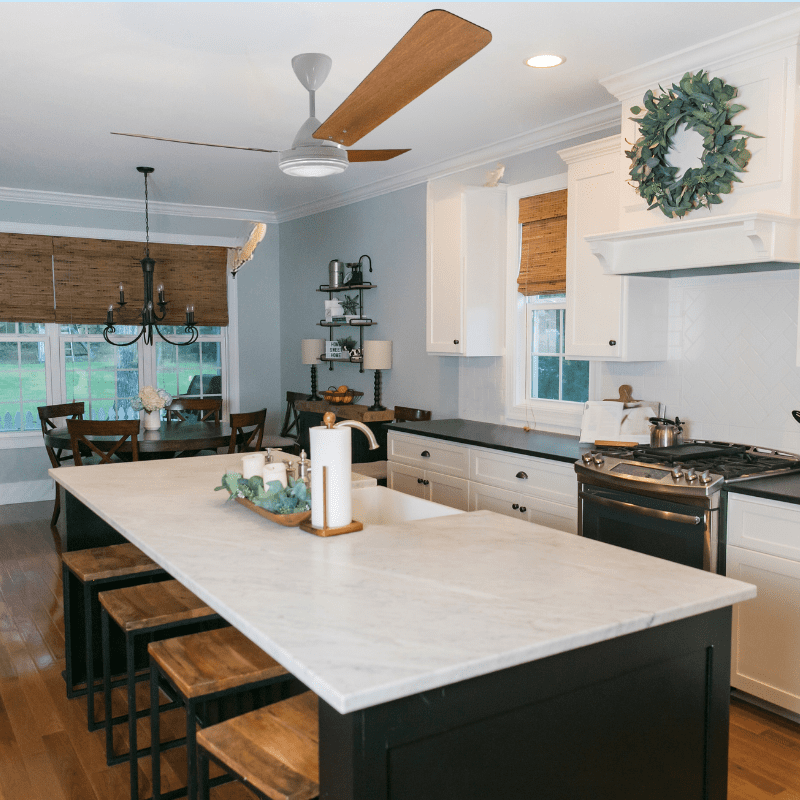 Fan supplied with 230mm downrod. Select longer or shorter down rods for higher or lower ceilings