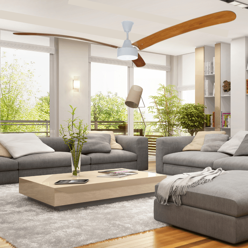 Maxima 100 Motor White Blades Wood Bent 3 Light Teak in 1500mm or 2000m Blade Sweep