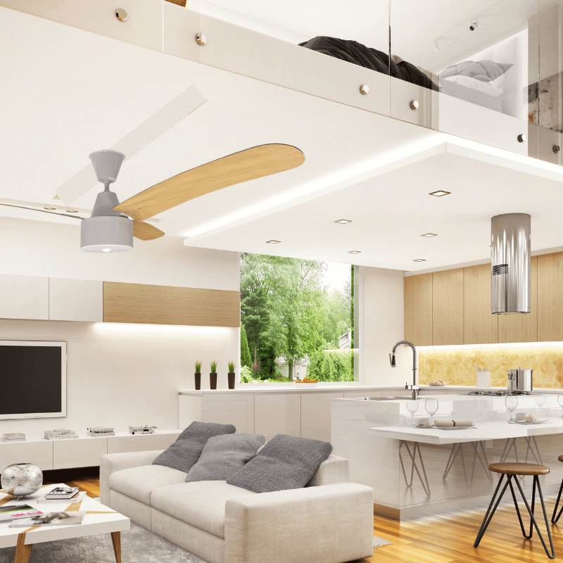 Fan supplied with 230mm downrod. Select longer or shorter down rods for higher or lower ceilings