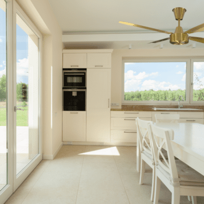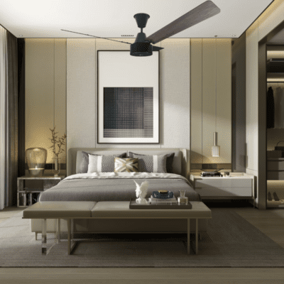 Fan supplied with 230mm downrod. Select longer or shorter down rods for higher or lower ceilings