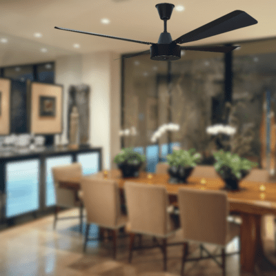 Fan supplied with 230mm downrod. Select longer or shorter down rods for higher or lower ceilings