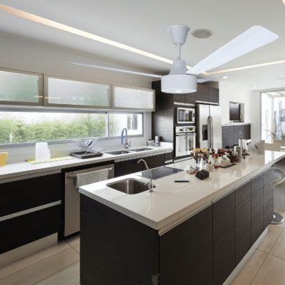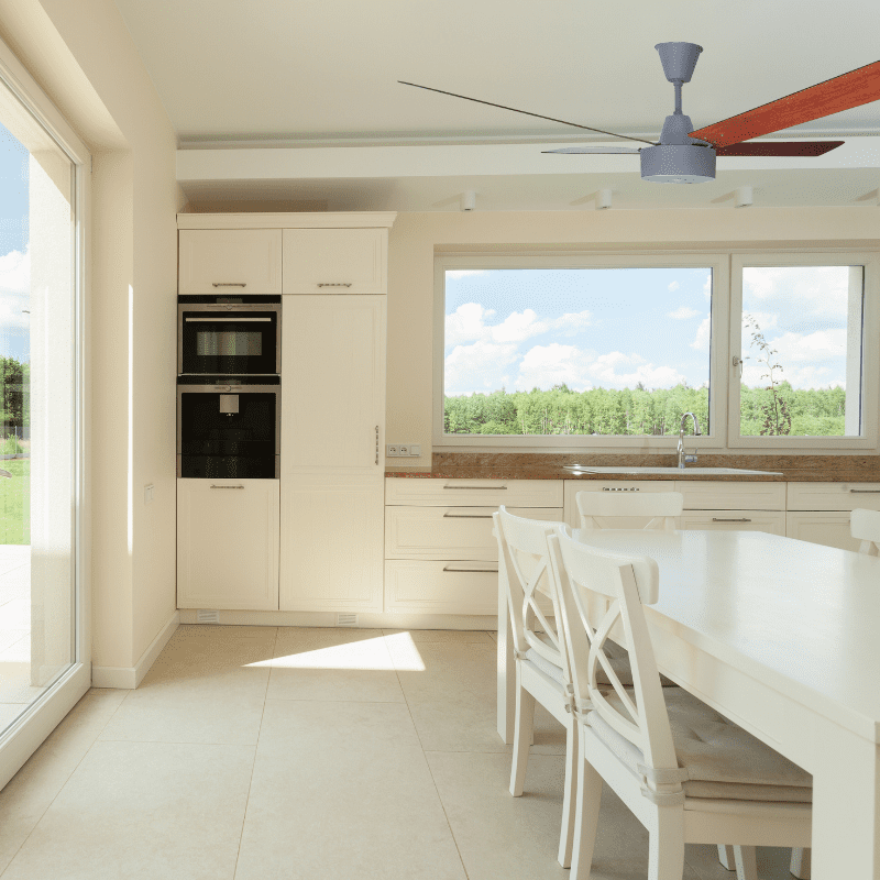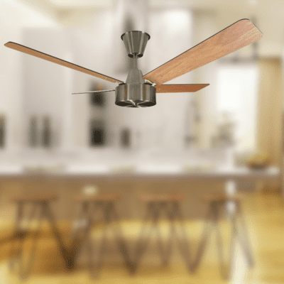 Fan supplied with 230mm downrod. Select longer or shorter down rods for higher or lower ceilings