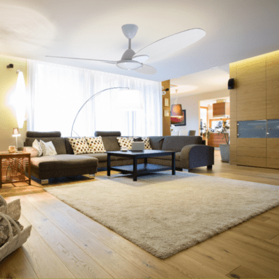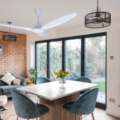 Fan supplied with 230mm downrod. Select longer or shorter down rods for higher or lower ceilings