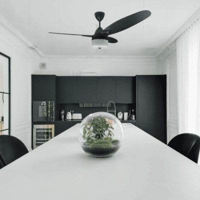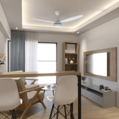 Fan supplied with 230mm downrod. Select longer or shorter down rods for higher or lower ceilings