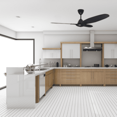 Fan supplied with 230mm downrod. Select longer or shorter down rods for higher or lower ceilings